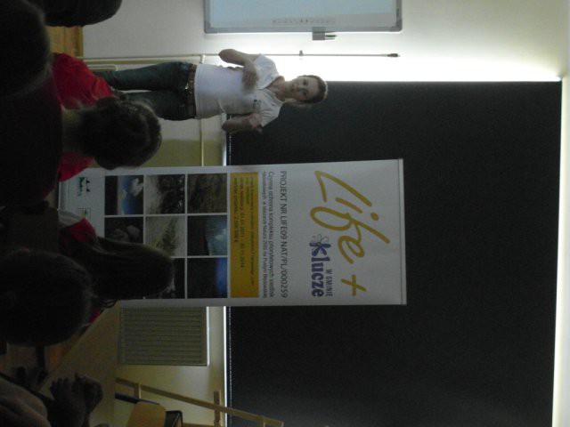 W trakcie wygłaszanej prezentacji pt.: „Czy znasz Pustynię Błędowską?” uczestnicy mieli okazję m.in. poznać faunę i florę naszej Pustyni oraz zobaczyć jak „Polska Sahara” wyglądała na początku ubiegłego wieku. Ponadto uczniowie mogli dowiedzieć się dlaczego krajobraz Pustyni zmienił się na przestrzeni lat oraz na czym polega realizacja projektu LIFE09 NAT/PL/000259. Ciekawą formą podsumowania całego spotkania był quiz wykorzystujący wiadomości przedstawione w części teoretycznej. Dzieci nie miały żadnych trudności z odpowiedzią na pytania konkursowe, co świadczy o tym, że nawet najmłodsi interesują się „pustynnymi” zagadnieniami. Uczniowie, którzy wzięli udział w quizie oraz wykazali się największą aktywnością podczas dyskusji zostali nagrodzeni drobnymi upominkami.